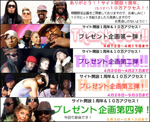 ![]() 1周年&10万ヒットキャンペーン用 (期間) 2006年4月12日~5月10日 サイト1周年に加え、カウンタが10万を超えたという事で、 管理人がPCにためこんでいたBEPのビデオや貴重な音源を掲載しました。 全部で第4弾までありました。今ではビデオを簡単にネットに掲載できるように なりましたね。 (というより、管理人がパソコンに無知すぎてよく分かってなかっただけw) |