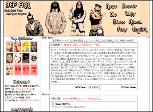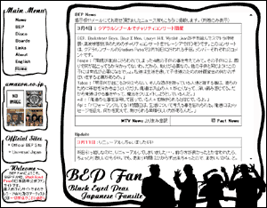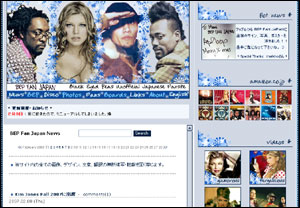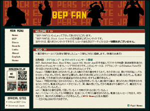 ![]() 2007年5月30日~10月24日 グレイ&紅色でシンプルにしてみました。今回はトップだけじゃなく、 他ページも色々変えたので、すんごい時間かかりました。 文字を小さくしてしまったので、見づらかったらすいません。 画像は、ペプシのCMのものです。ずっとファーギーのソロのニュースや画像ばかりで、 久々のBEP4人集結画像が嬉しくてリニューアルを思いつきました。 あまりの嬉しさにBEPがいっぱいです。 |